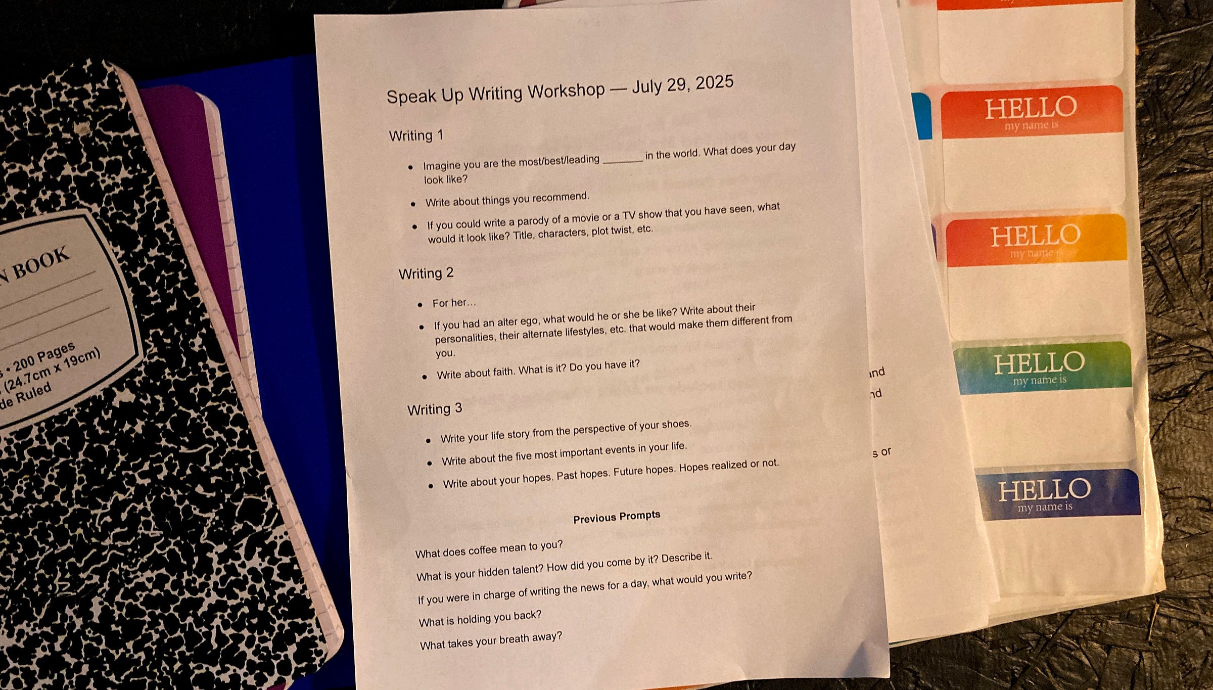 Workshop Writing Prompts. Thanks to Isaac, Michael, Edward, Pauline.